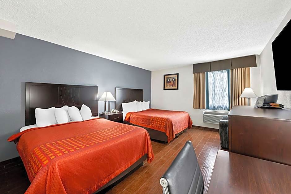 2 Queen Beds Non-Smoking Kitchenette Flat Screen Television Desk High Speed Internet Access Full Br is 323 square feet and includes 2 queen-size beds 150-154 width.